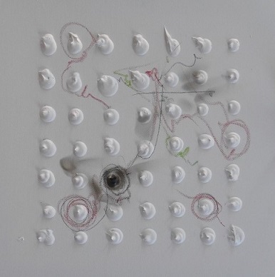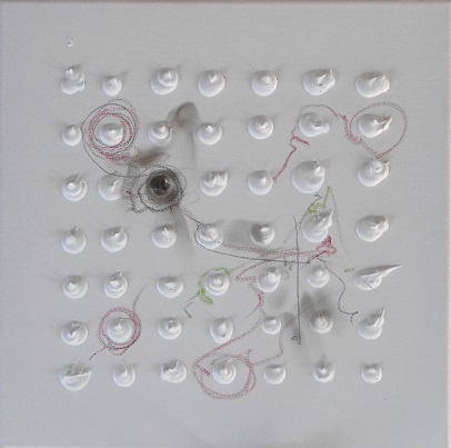 Title: D:Der Geist (der Anfang). E:The spirit 4 (the beginning). F:L'esprit (le début). I:Lo spirito (l'inizio). N:De geest ( het begin ). ES:El espíritu (el comienzo). Theme: "reality" 40 x 40 cm fumagine, acrylic and oil pastel on white canvas. not movable. (Rotating). |